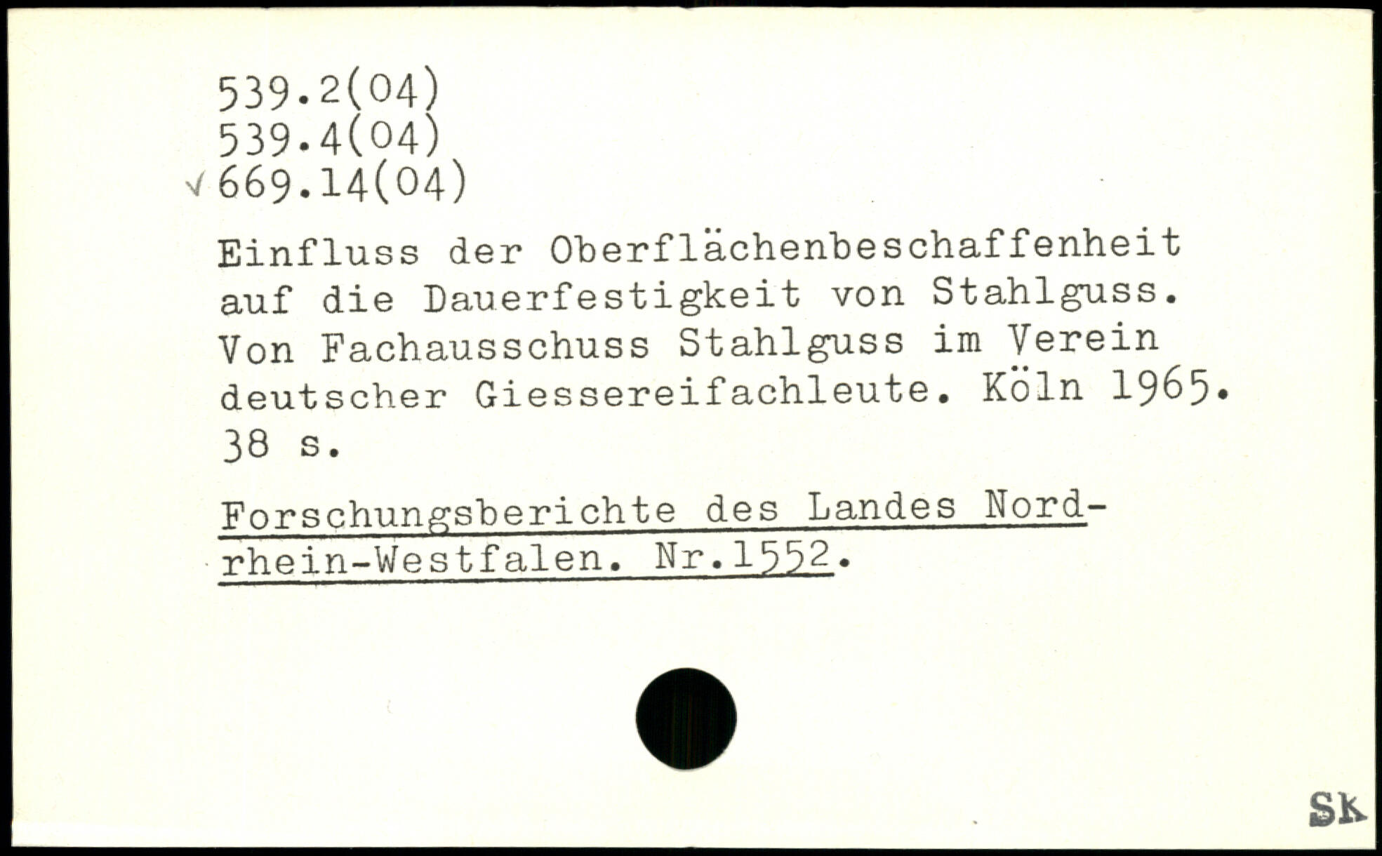 Einfluss der Oberflächenbeschaffenheit auf die Dauerfestigkeit von Stahlguss. Von Fachausschuss Stahlguss im Verein deutscher Giessereifachleute. Köln 19&5.