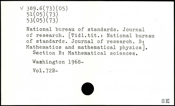 National bureau of standards. Journal of research. [Tidl.tit.: National bureau of standards. Journal of research. B: Mathematics and mathematical physics]. Section B: Mathematical sciences.