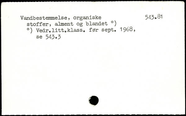 Vandbestemmelse, organiske 543.8^ stoffer, alment og blandet .) .) Vedr.litt.klass. før sept. 1968, se 543.5