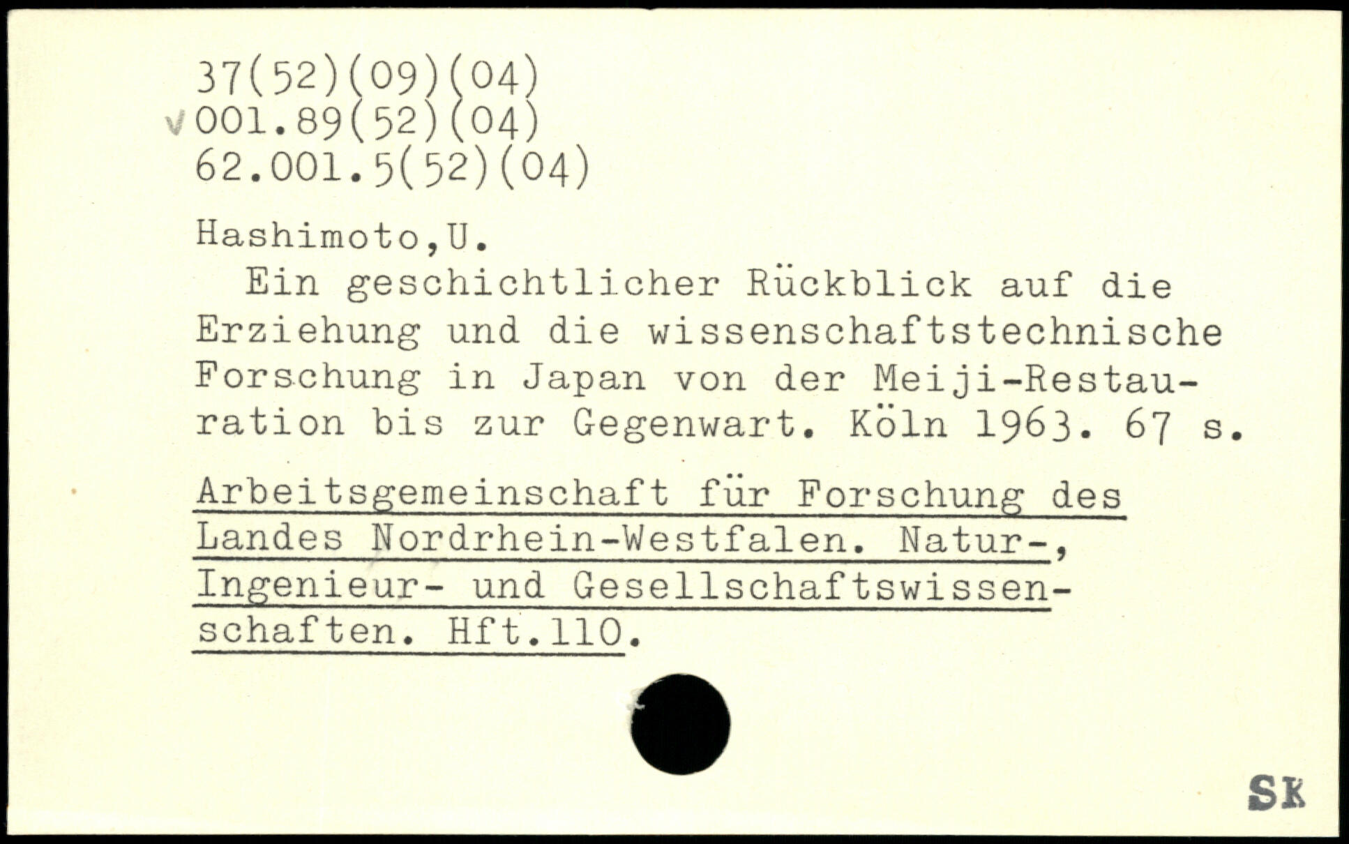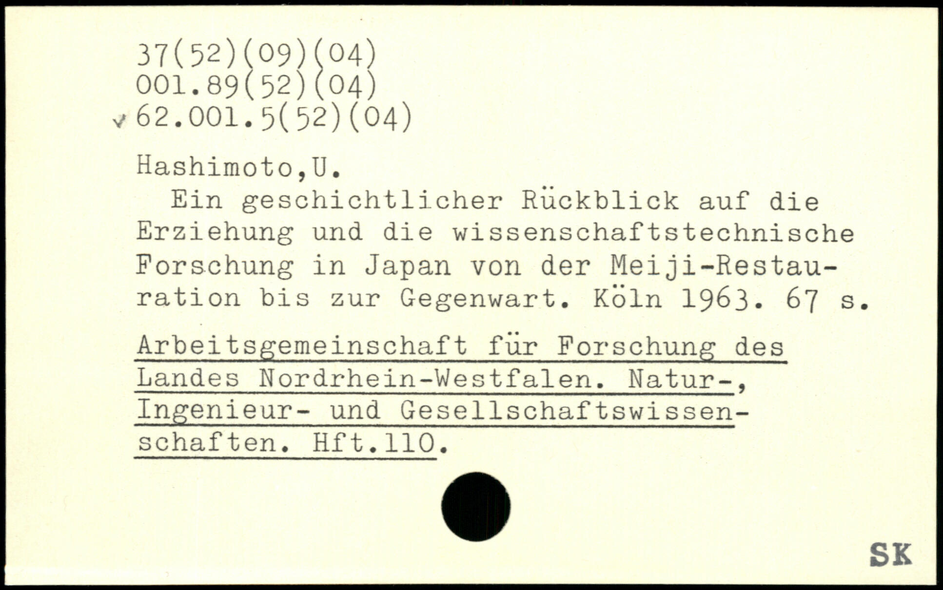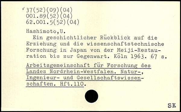 Ein geschichtlicher Rückblick auf die Erziehung und die wissenschaftstechnische Forschung in Japan von der Meiji-Restau-ration bis zur Gegenwart.