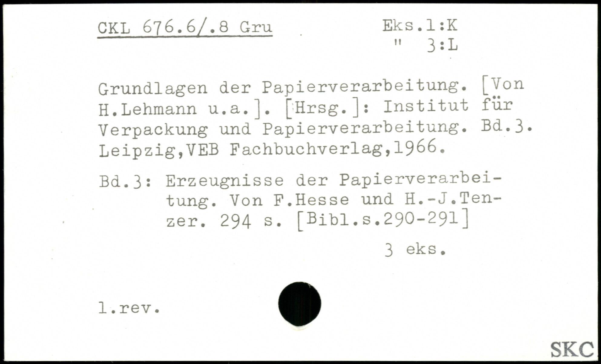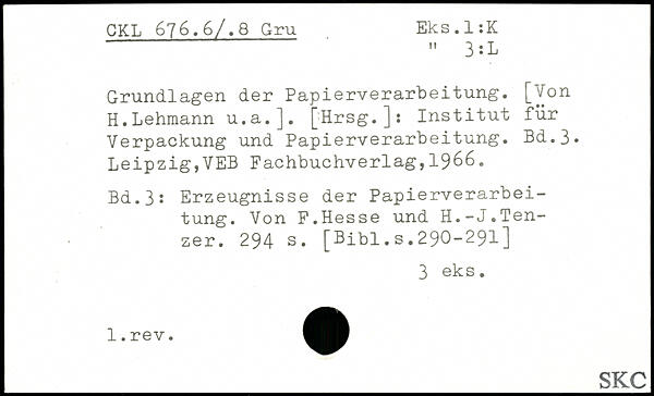 Grundlagen der Papierverarbeitung. [Von H.Lehmann u.a.]. [Hrsg.]: Institut für Verpackung und Papierverarbeitung.