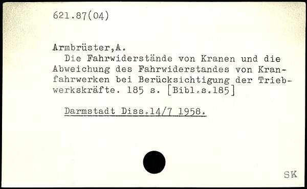 Die Fahrwiderstände von Kranen und die Abweichung des Fahrwiderstandes von Kranfahrwerken bei Berücksichtigung der Triebwerkskräfte.