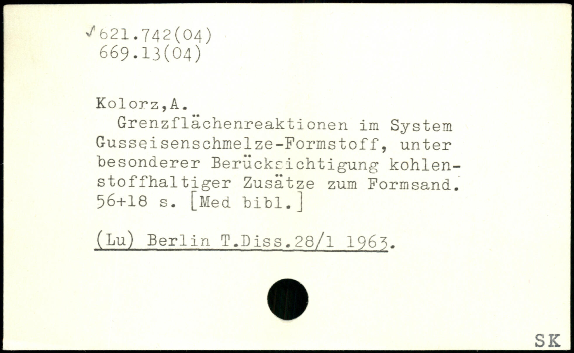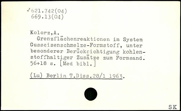 Grenzflächenreaktionen im System Gusseisenschmelze-Formstoff, unter besonderer Berücksichtigung kohlenstoffhaltiger Zusätze zum Formsand.