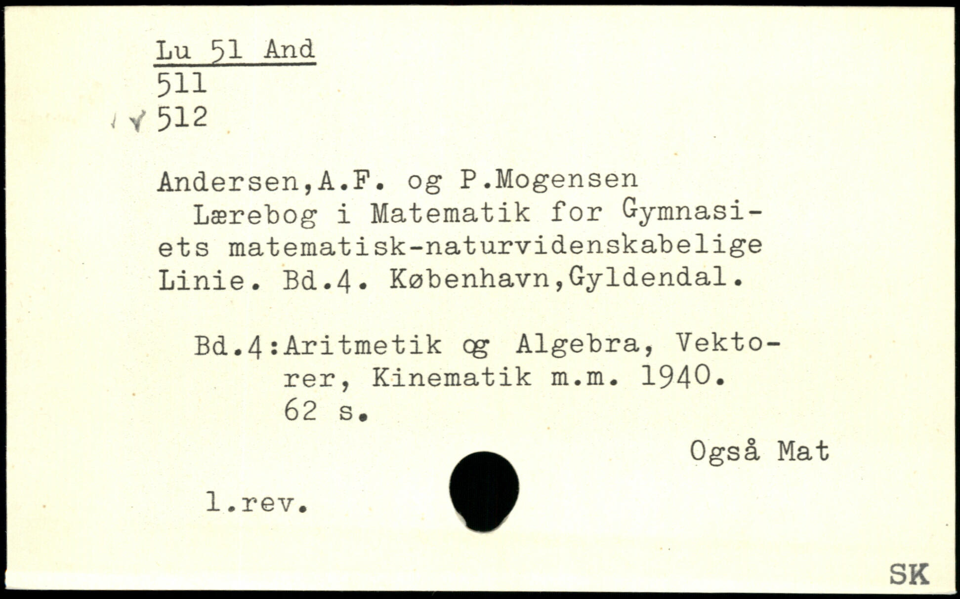 Andersen,A.F, og P.Mogensen Lærebog i Matematik for Gymnasiets matemati sk-naturvidenskabelige Linie.