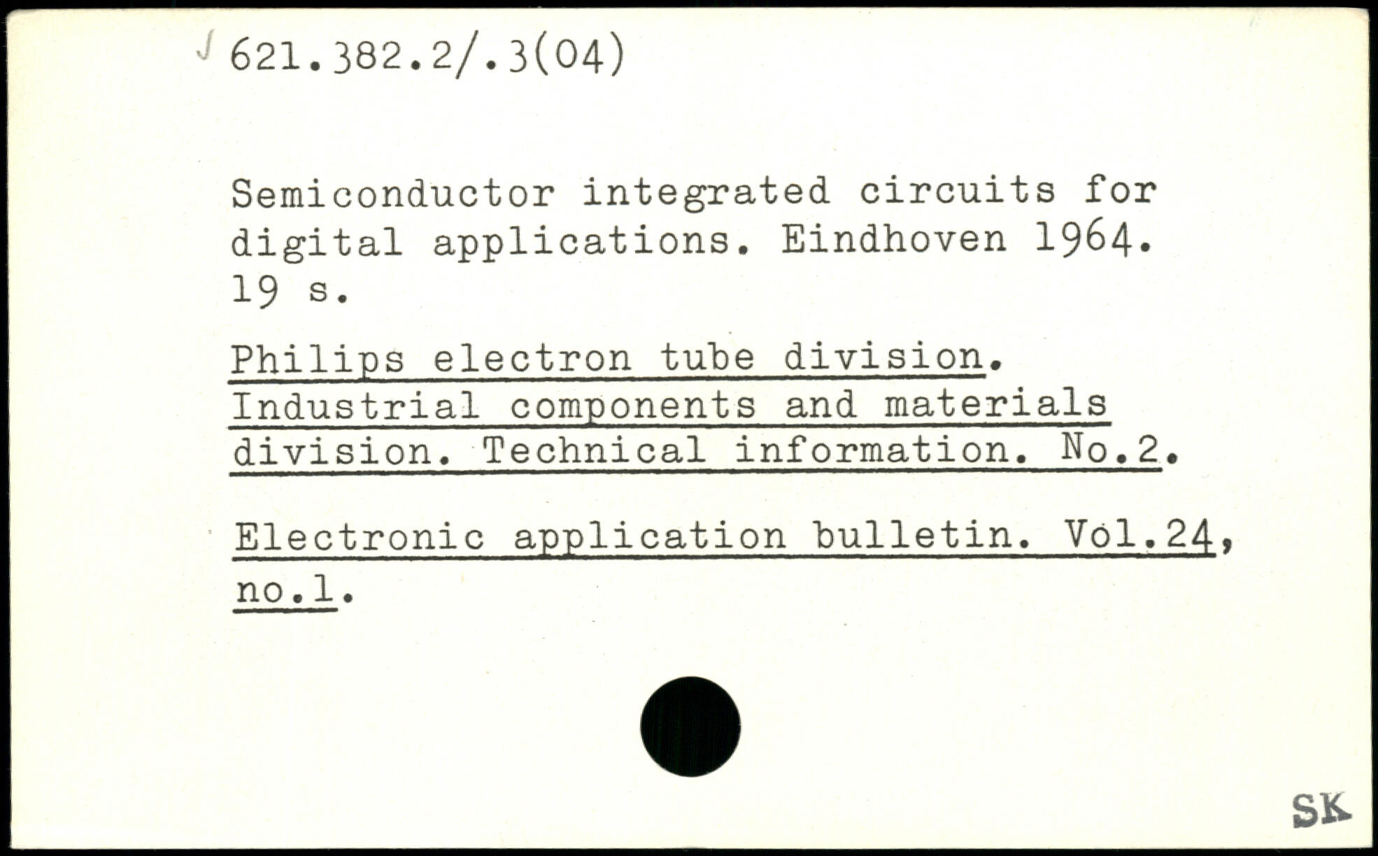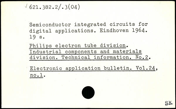 Semiconductor integrated circuits for digital applications. Eindhoven 1964.