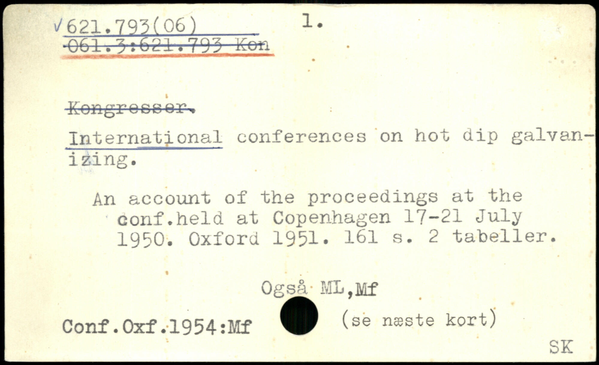 Internatj.onal conferences on hot dip galvanising. An account of the proceedings at the - conf.held at Copenhagen 17-21 July 1950.