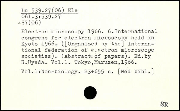 Electron microscopy 1966. 6.International congress for electron microscopy held in Kyoto 1966. ([Organized hy the] International federation of electron microscope societies). (Abstract:, pf papers). Ed.by R.Uyeda.