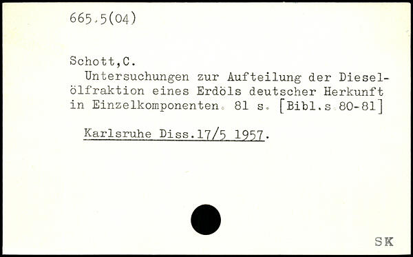 Untersuchungen zur Aufteilung der Diesel-Ölfraktion eines Erdöls deutscher Herkunft in Einzelkomponenten: