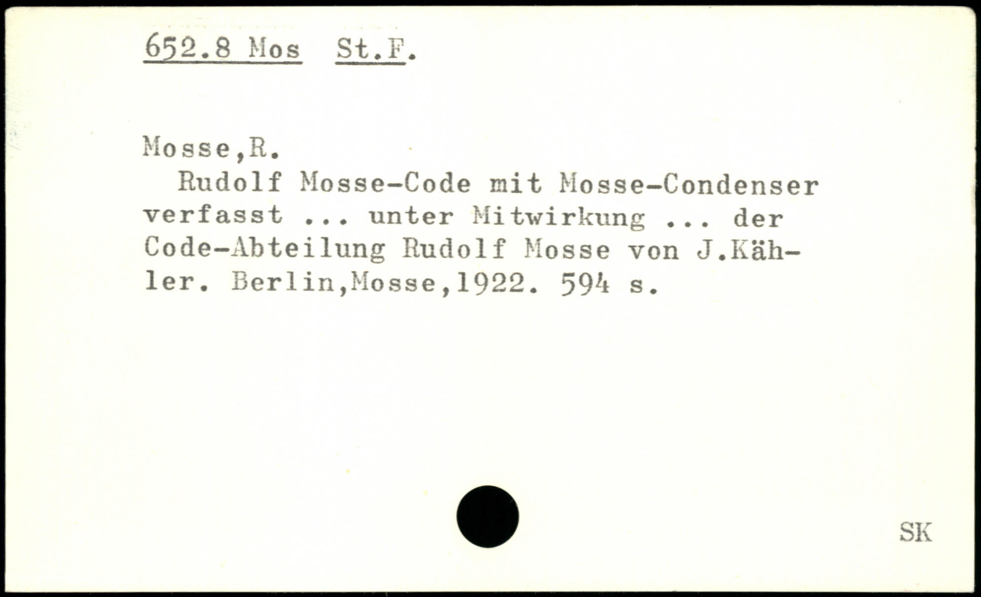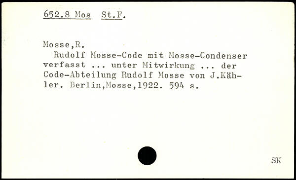 Rudolf Mosse-Code mit Mosse-Condenser verfasst ... unter Mitwirkung ... der Code-Abteilung Rudolf Mosse von J.Kahler.