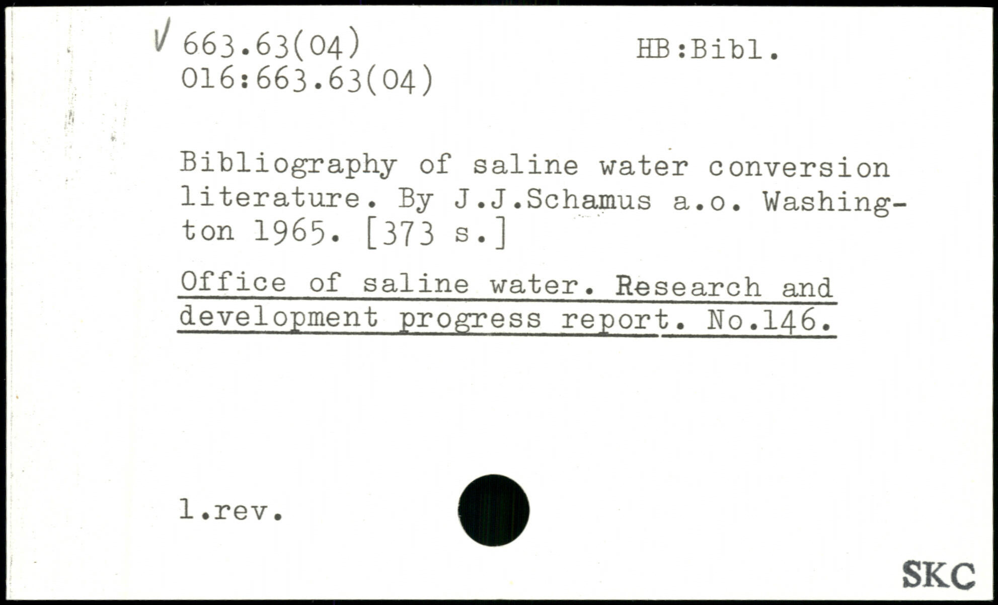 Bibliography of saline water conversion literature. By J.J.Schamus a.o.