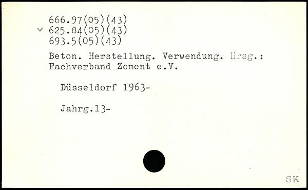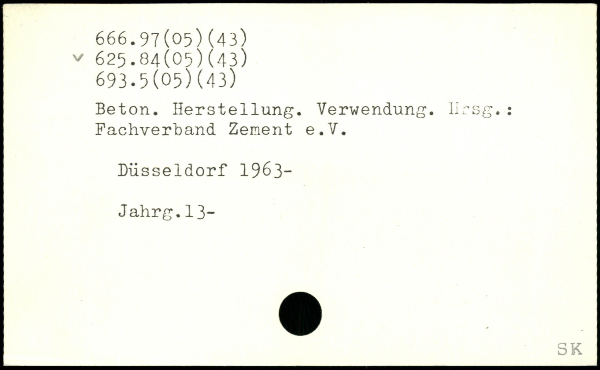Beton. Herstellung. Verwendung. Ilrsg. : Fachverband Zement e.V. Düsseldorf 196 3— Jahrg.13-