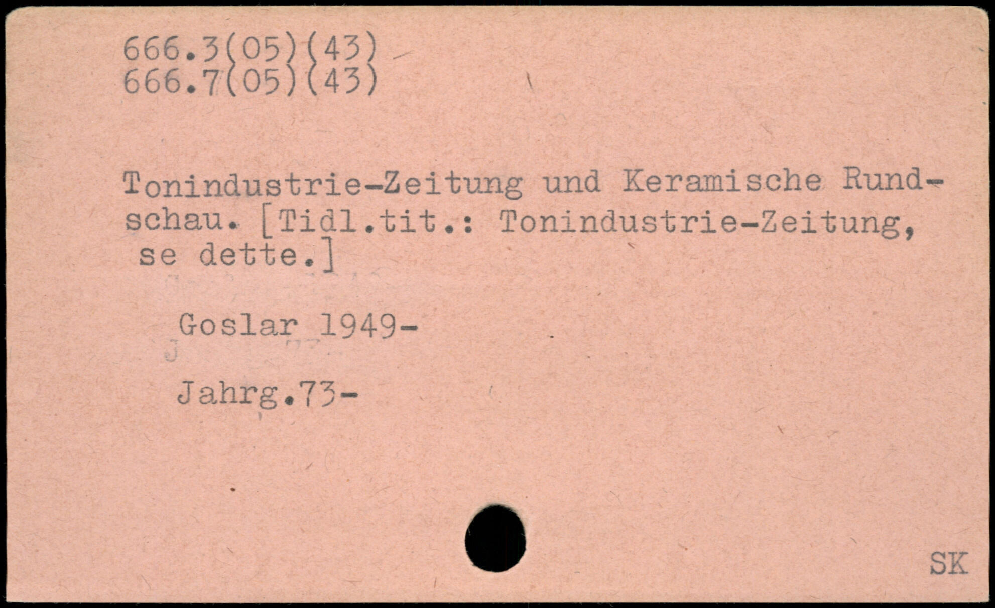 Tonindustrie-Zeitung und Keramische Rund-^ schau. [Tidl.tit.: Tonindustrie-Zeitung, se dette.j Goslar 1949- Jahrg.73-