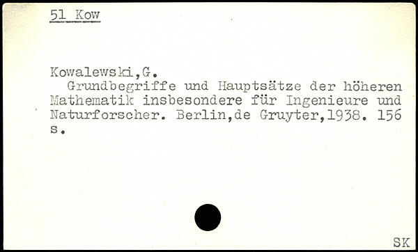 Grundbegriffe und Hauptsätze der höheren Mathematik insbesondere für Ingenieure und Naturforscher. Berlin,de Gruyter,1938.