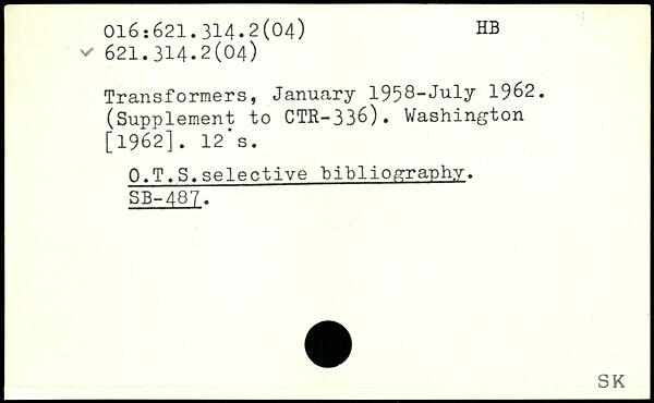 Transformers, January 1958-July 1962. (Supplement to CTR-336). Washington