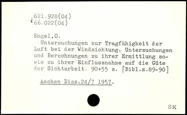 Untersuchungen zur Tragfähigkeit der Luft hei der Windsichtung. Untersuchungen und Berechnungen zu ihrer Ermittlung sowie zu ihrer Einflussnahme auf die Güte der Sichtarbeit
