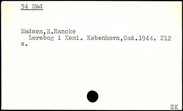 Mads en,E.Rane ke Lærebog i Kemi. København,Gad.1944.