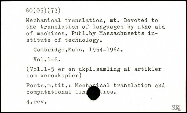 Mechanical translation, mt. Devoted to the translation of languages by i.the aid of machines.