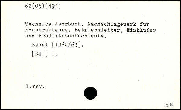 Technica Jahrbuch. Nachschlagewerk für Konstrukteure, Betriebsleiter, Einkäufer und Produktionsfachleute.