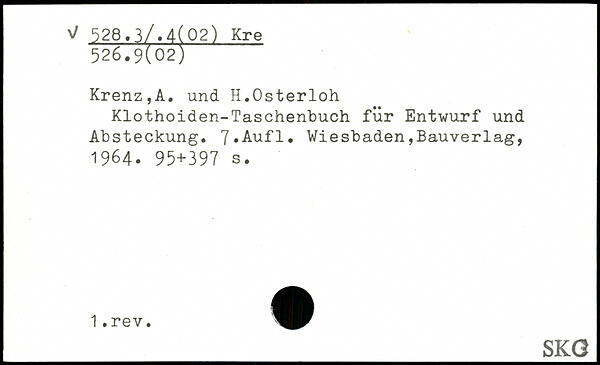 Klothoiden-Taschenhuch für Entwurf und Absteckung.