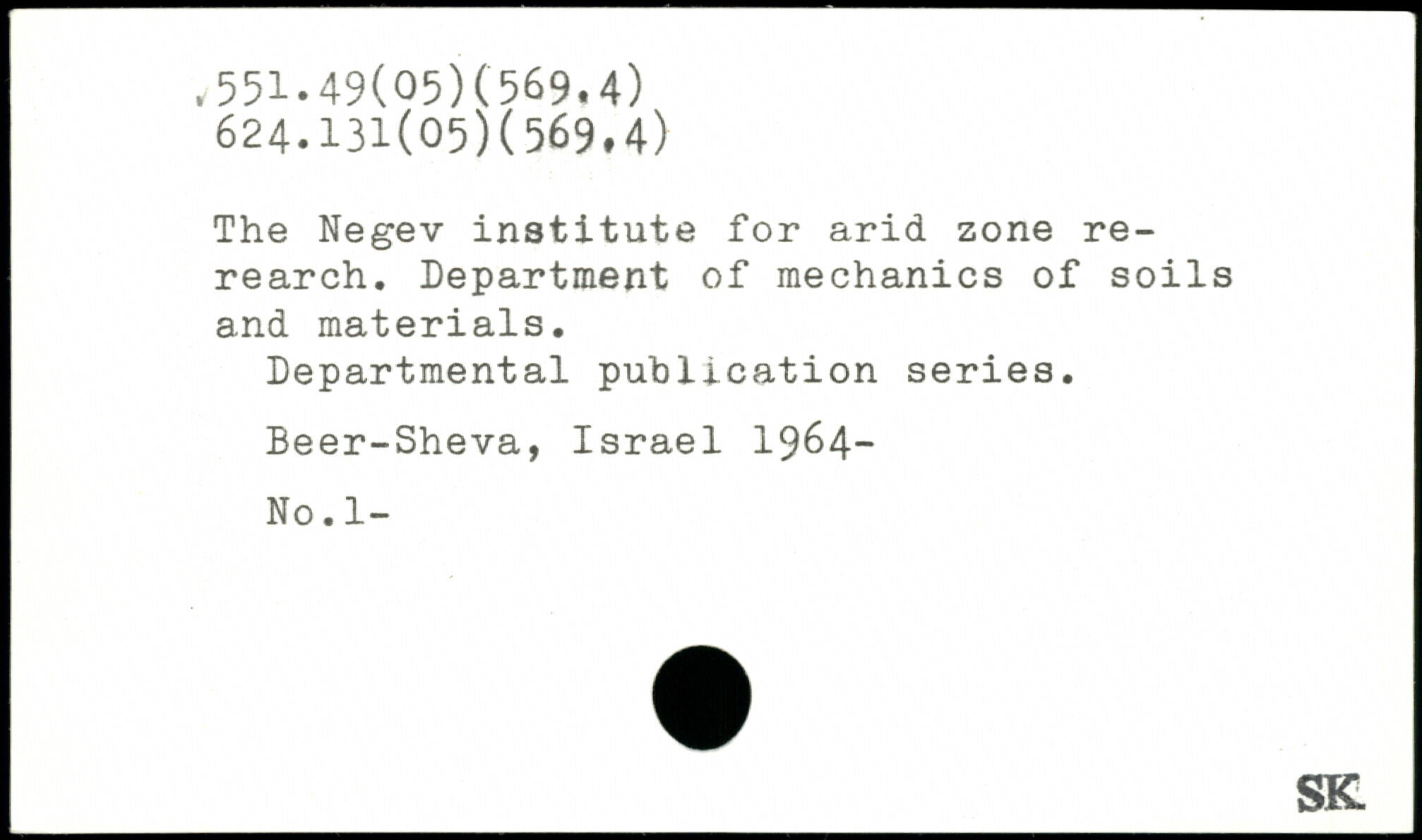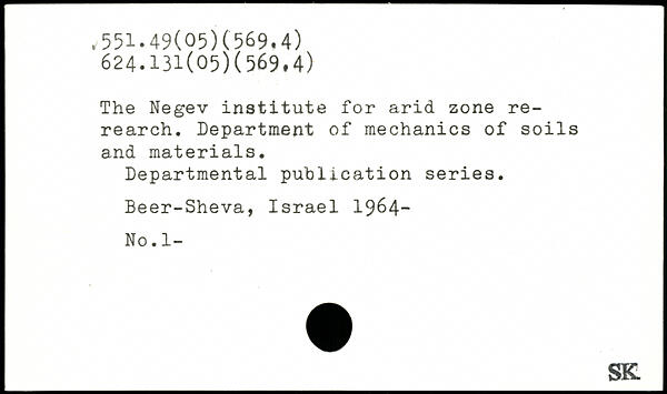 The Negev institute for arid zone rerearch. Department of mechanics of soils and materials. Departmental publication series. Beer-Sheva, Israel 1964-No. 1-