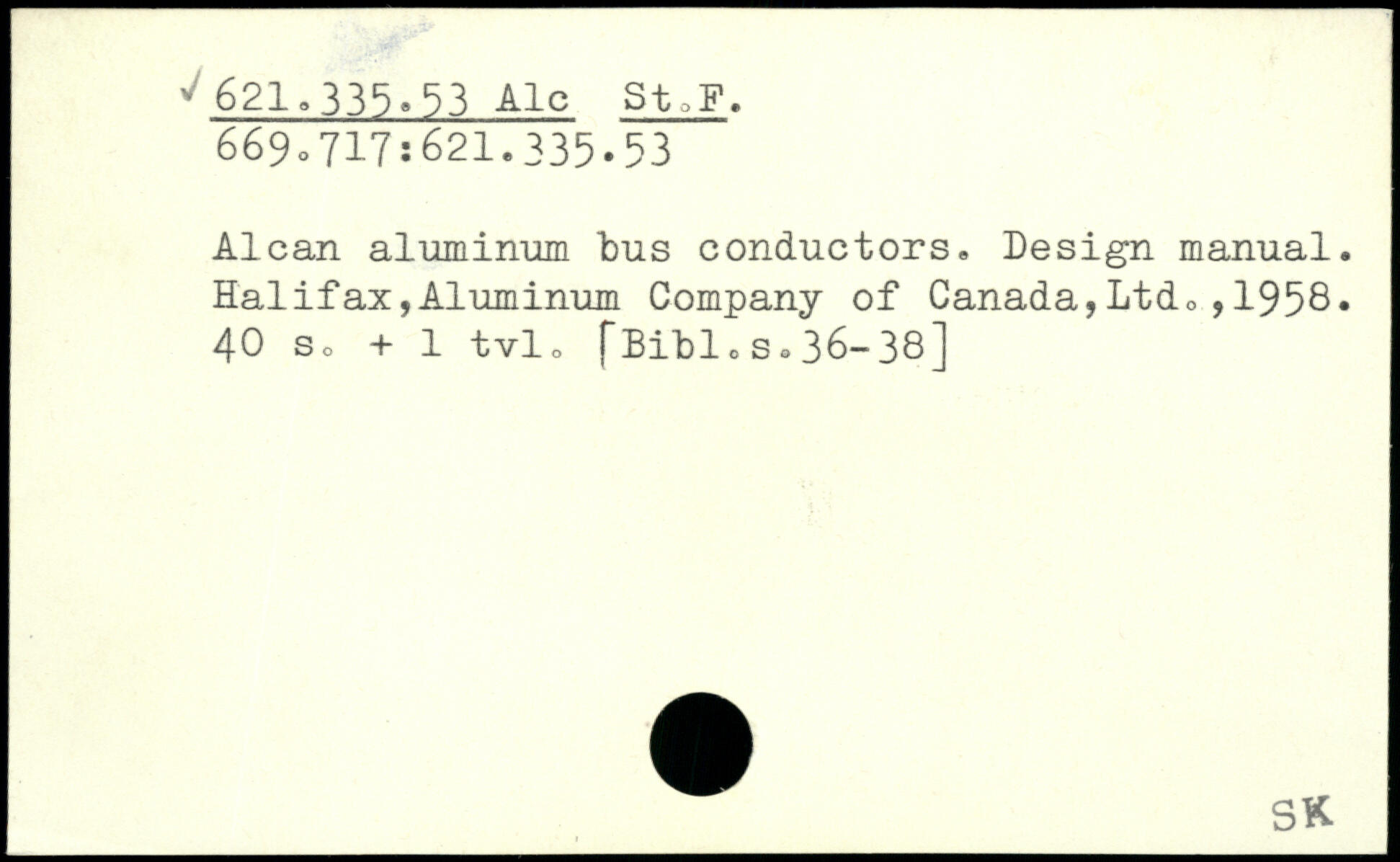 Alcan aluminum bus conductors. Design manual. Halifax,Aluminum Company of Canada,Ltd,,1958.