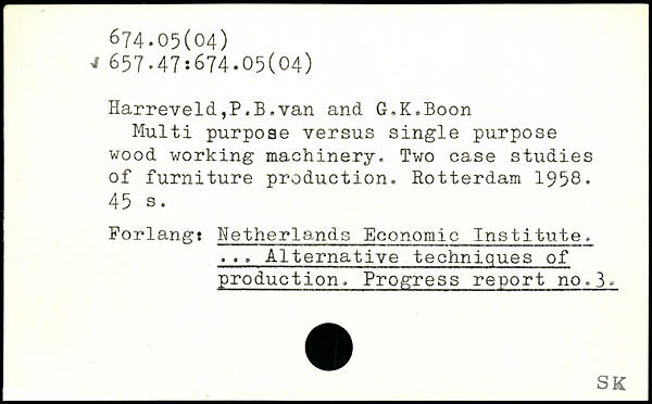 Multi purpose versus single purpose wood working machinery. Two case studies of furniture production. Rotterdam 1958.