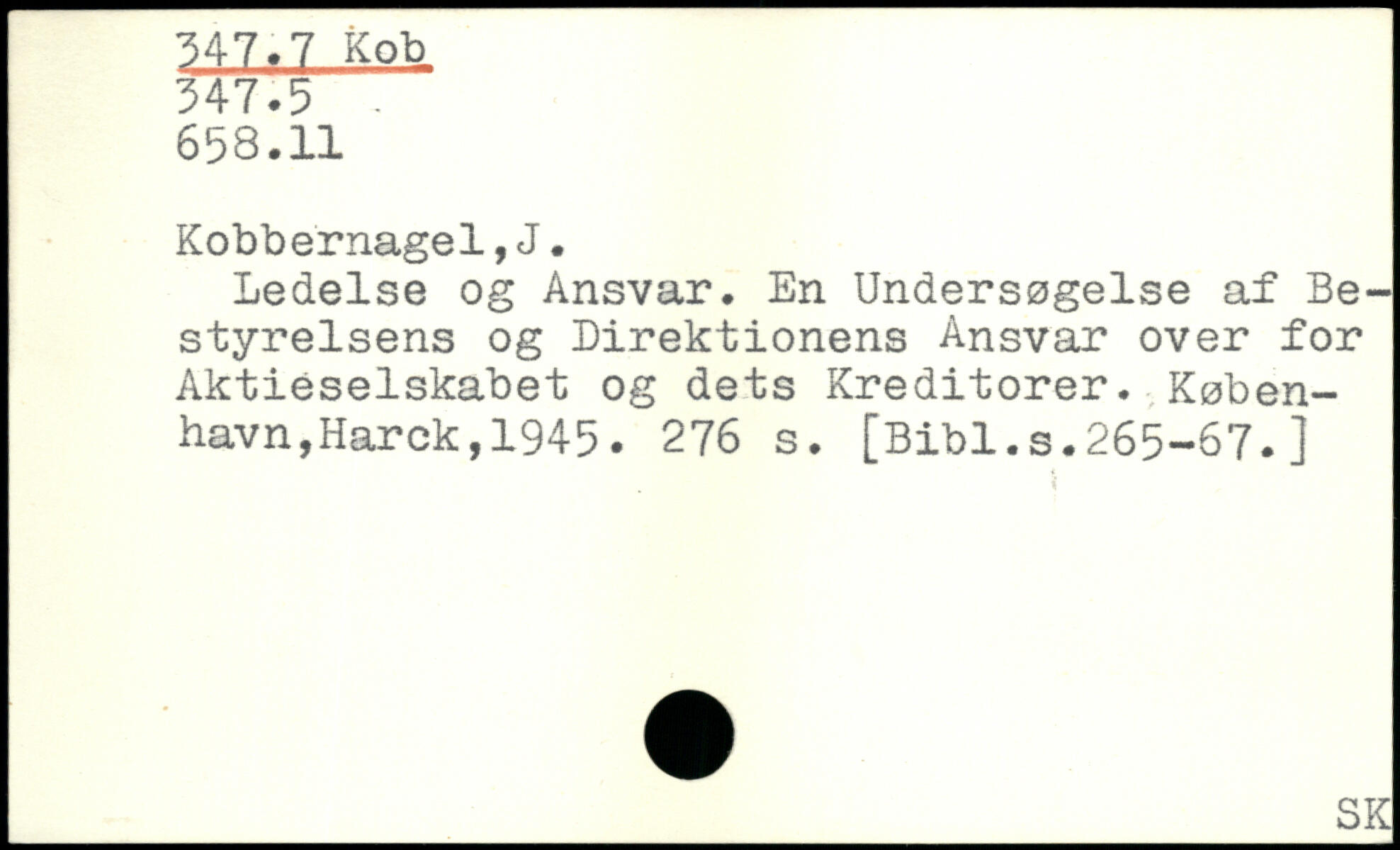 ledelse og Ansvar. En Undersøgelse af Bestyrelsens og Direktionens Ansvar over for Aktieselskabet og dets Kreditorer.