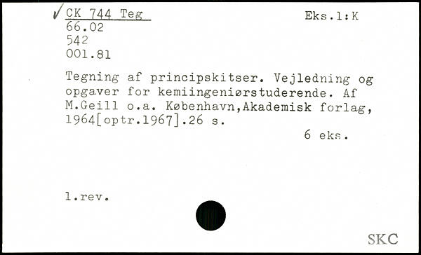 Tegning af principskitser. Vejledning og opgaver for kemiingeniørs tuderende. Af M.Geill o.a.