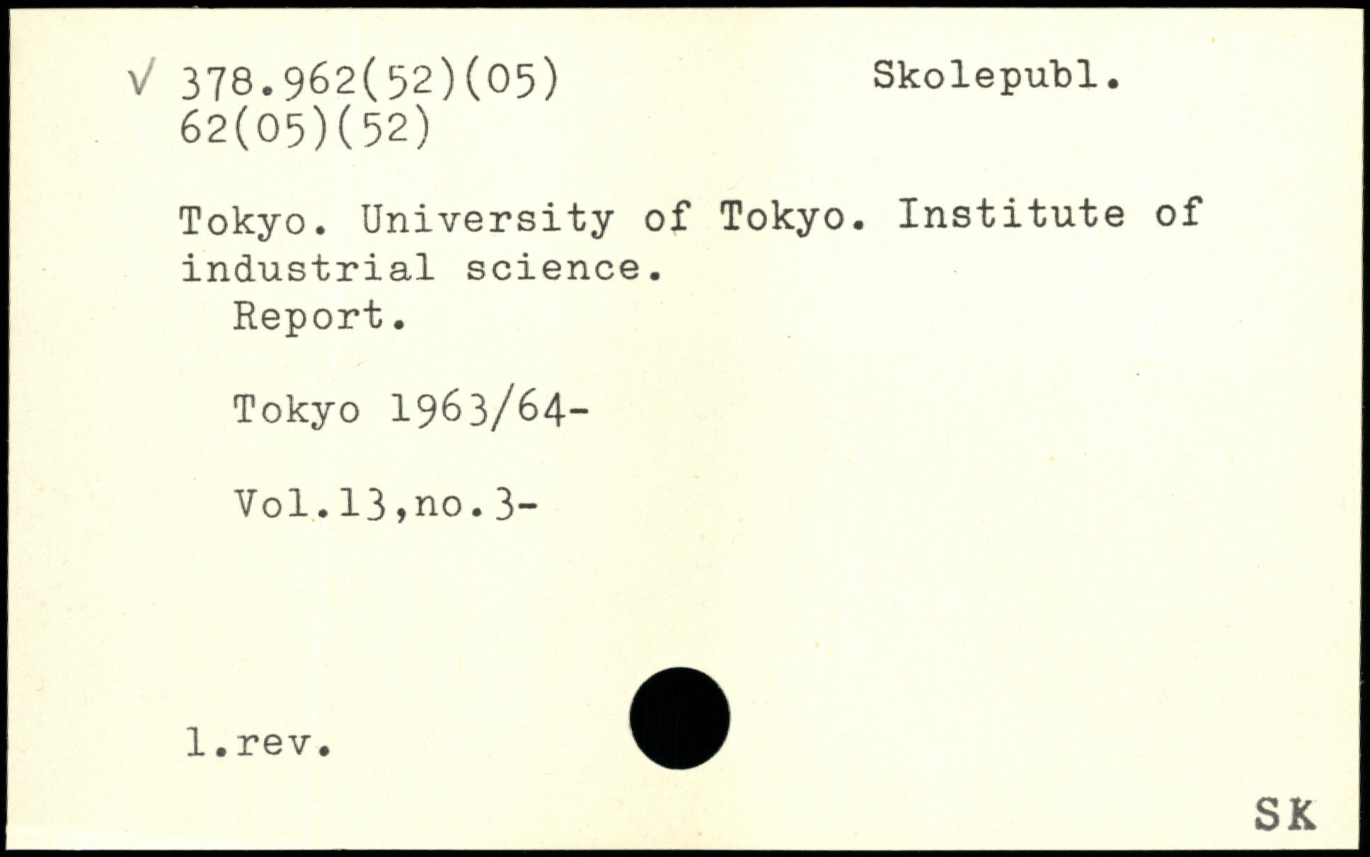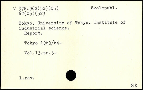 Tokyo. University of Tokyo. Institute of industrial science. Report.