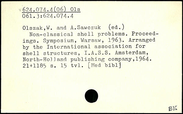 01szak,W. and A.Sawczuk (ed.) Non-classical shell problems. Proceedings.