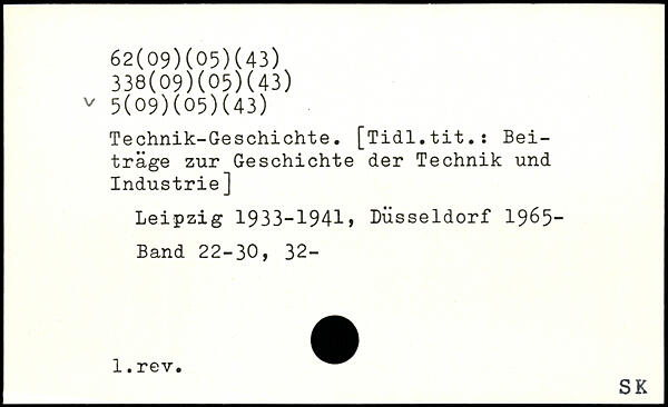 Teohnik-Geschiohte. [Tidl.tit.: Bei-träge zur Geschichte der Technik und Industrie]