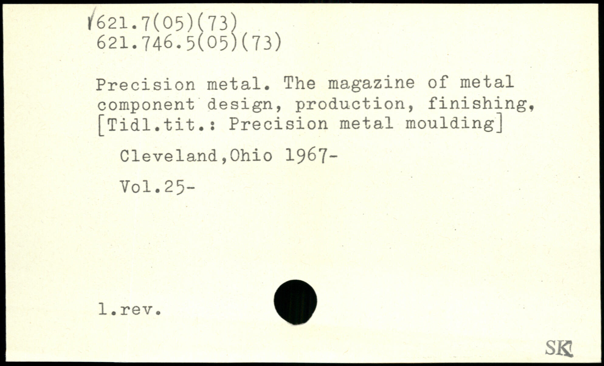 Precision metal. The magazine of metal component design, production, finishing, [Tidl.tit.i Precision metal moulding]