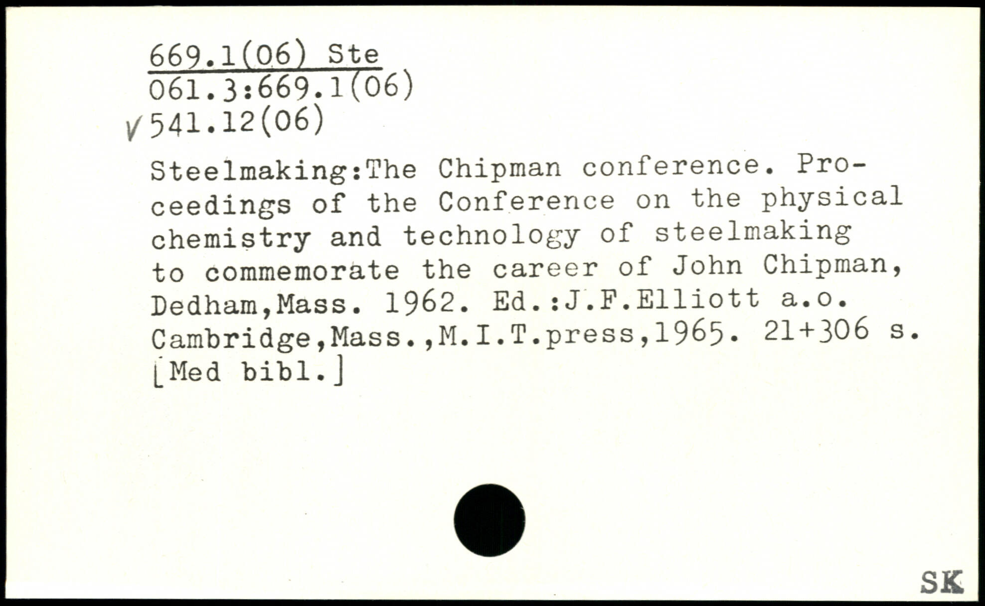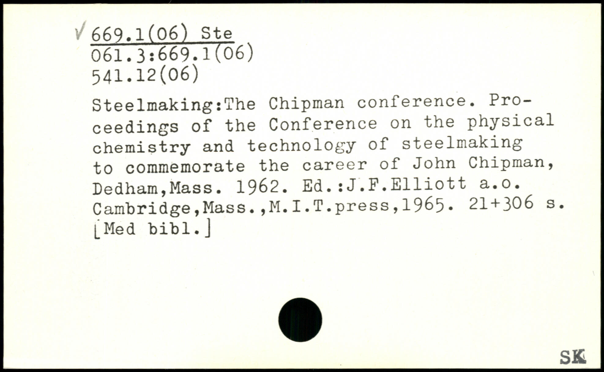 Steelmaking:The Chipman conference. Proceedings of the Conference on the physical chemistry and technology of steelmaking to commemorate the career of John Chipman, Dedham,Mass. 1962. Ed.:J.F.Elliott a.o.