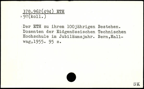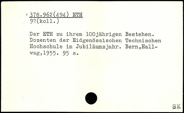 Der ETH zu ihrem 100jährigen Bestehen. Dozenten der Eidgenössischen Technischen Hochschule im Jubiläumsjahr.