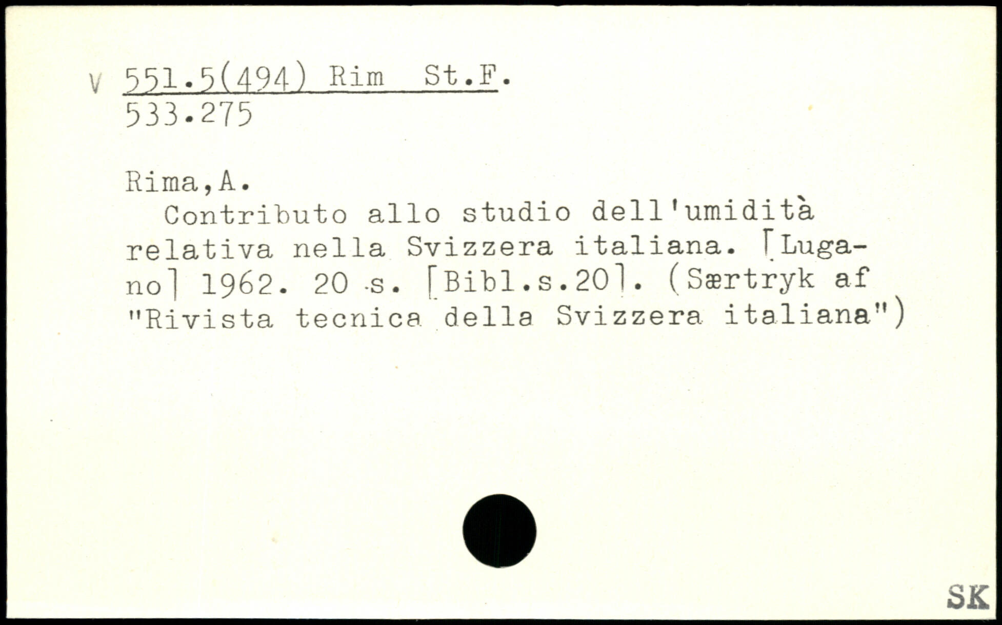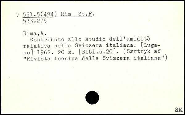 Contributo alio studio dell1umidita relativa nella Svizzera italiana.