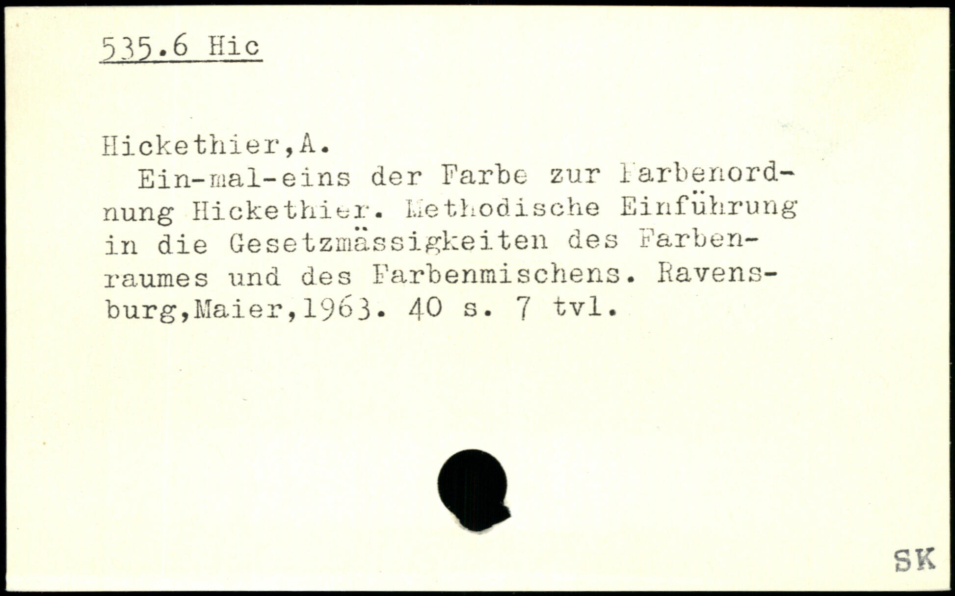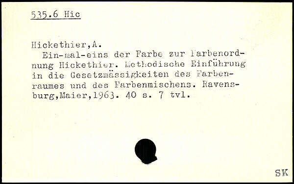 Ein-mal-eins der Farbe zur Farbenord-. nung Ricke thi er. Methodische Einführung in die Gesetzmässigkeiten des Farbenraumes und des Farbenmischens.
