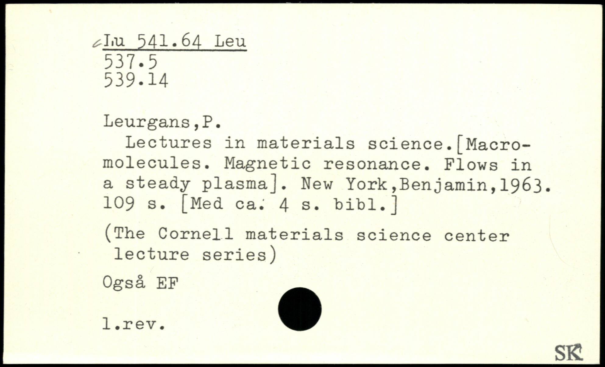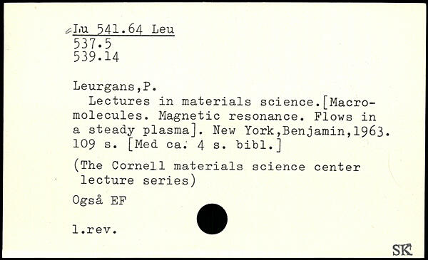 Lectures in materials science.[Macromolecules. Magnetic resonance. Flows in a steady plasma].