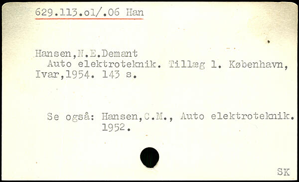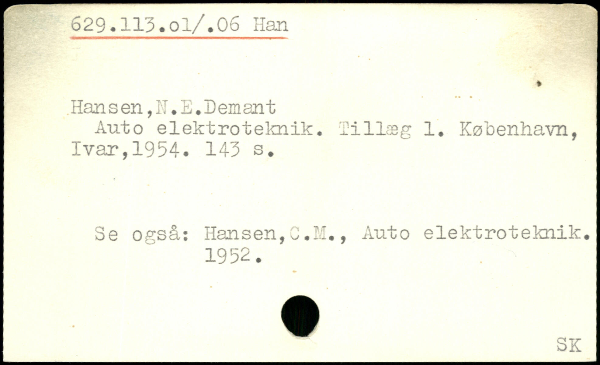 . Hansen, N.E. Demant Auto elektroteknik. Tillæg 1.