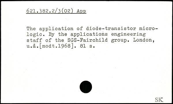 The application of diode-transistor micrologic. By the applications engineering staff of the SGS-Fairchild group. London, u.a.[modt.1968].