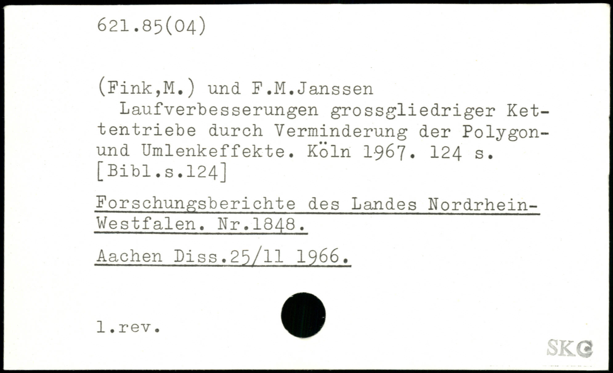 (Fink,M.) und F.M.Janssen Laufverbesserungen grossgliedriger Kettentriebe durch Verminderung der Polygon-und Umlenkeffekte.