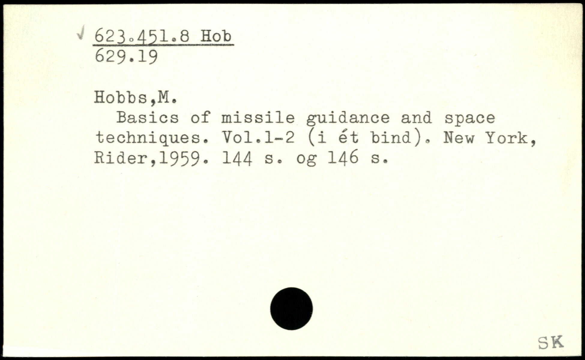 Basics of missile guidance and space techniques.