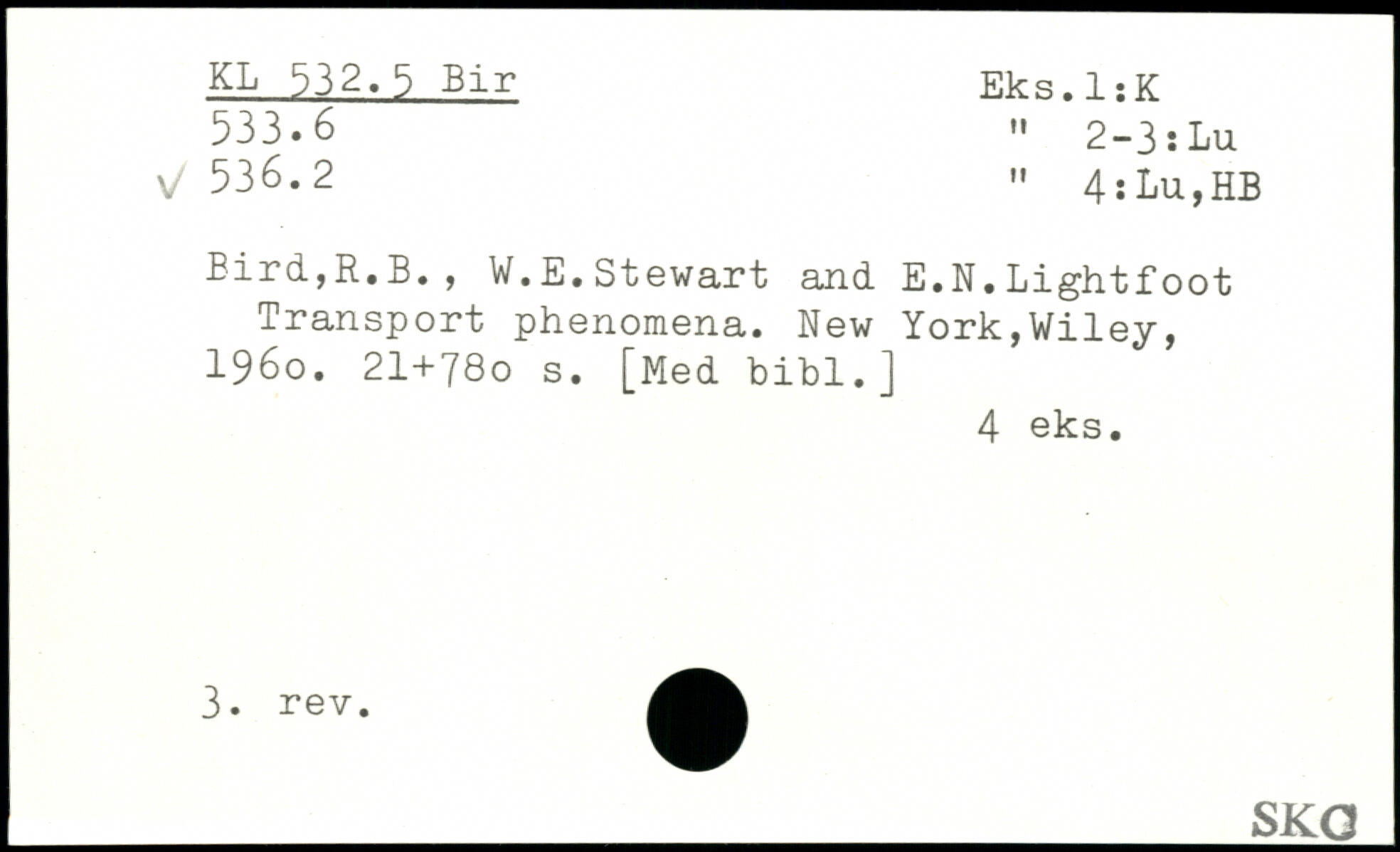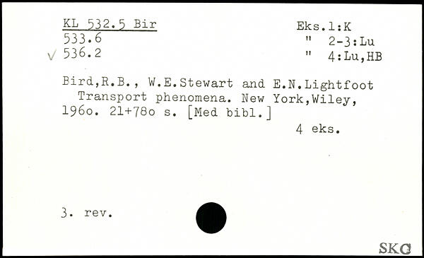 Bird,R.B., W.E.Stewart and E.N.Lightfoot Transport phenomena.