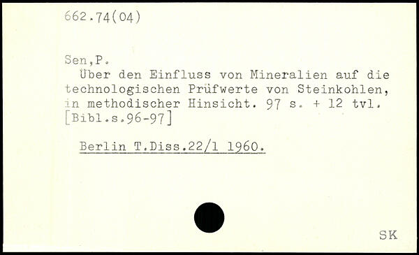Über den Einfluss von Mineralien auf die technologischen Prüfwerte von Steinkohlen, in methodischer Hinsicht.