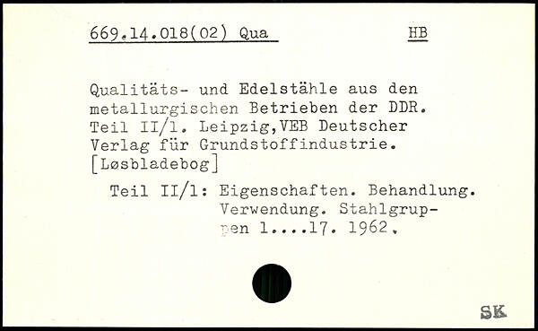 Qualitäts- und Edelstahle aus den metallurgischen Betrieben der DDR. Teil Il/l. Leipzig,VEB Deutscher Verlag für Grundstoffindustrie.
