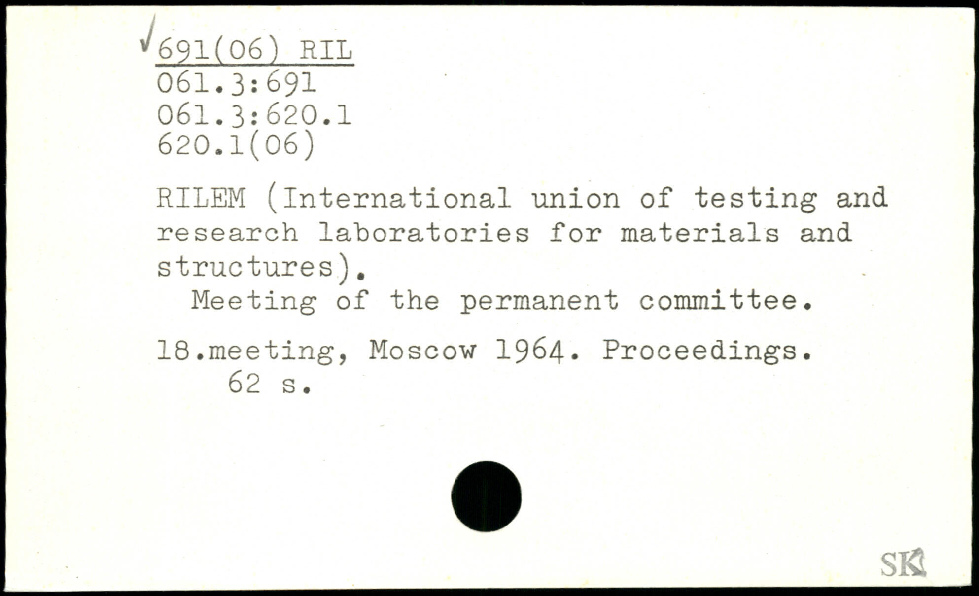 RILEM (international union of testing and research laboratories for materials and structures), Meeting of the permanent committee. 18.meeting, Moscow 1964. Proceedings.