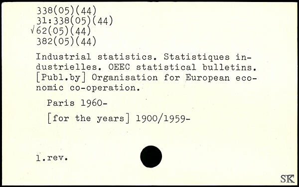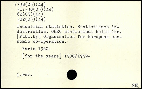 Industrial statistics. Statistiques industrielles. OEEC statistical bulletins.