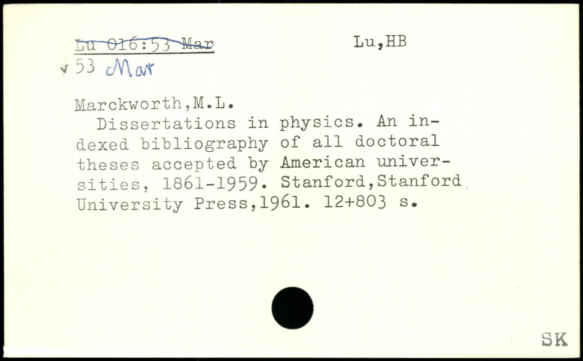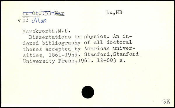 Dissertations in physics. An indexed bibliography of all doctoral theses accepted by American universities, 1861-1959.