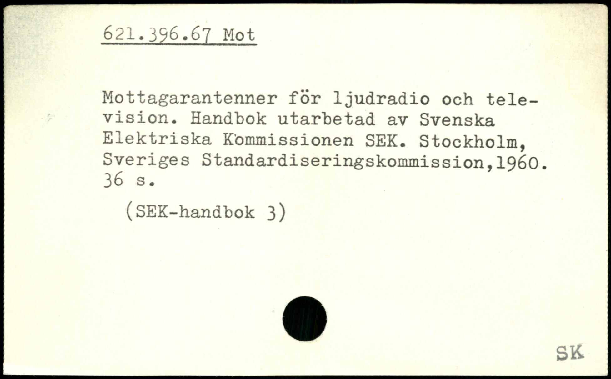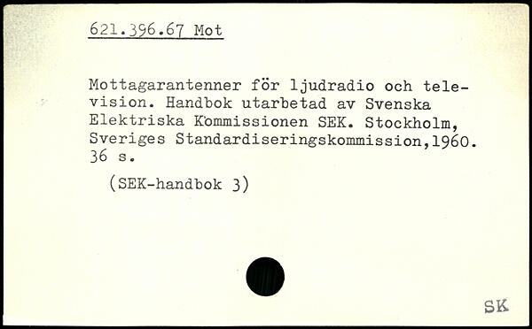 Mottagarantenner för ljudradio och television. Handbok utarbetad av Svenska Elektriska Kommissionen SEK.