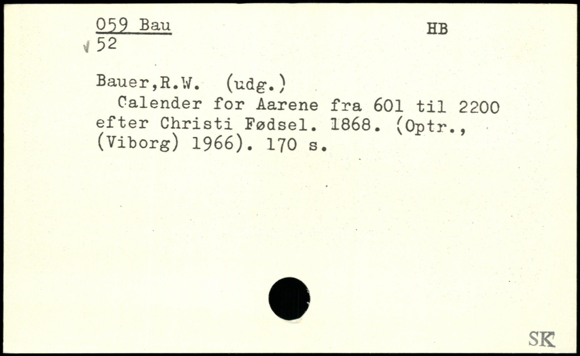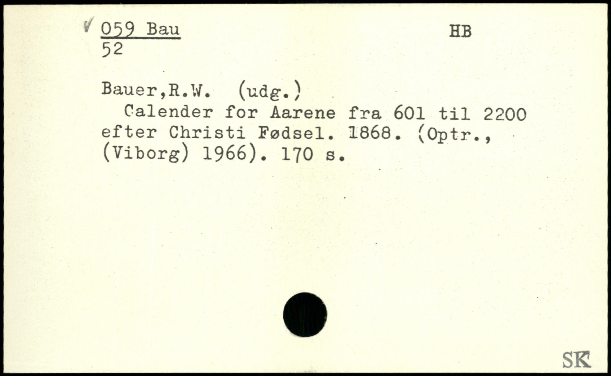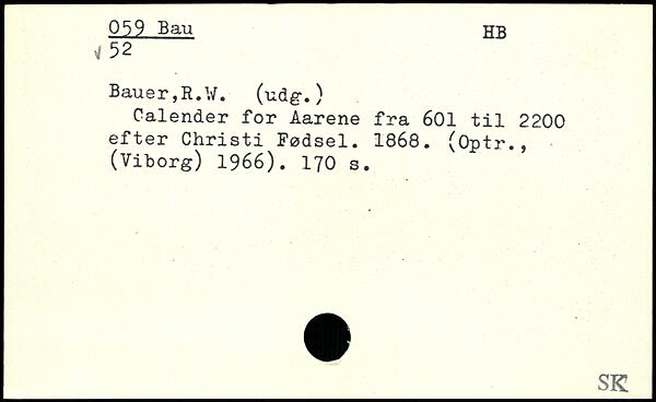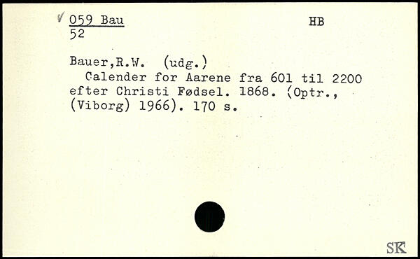 Calender for Aarene fra 601 til 2200 efter Christi Fødsel. 1868. (Optr., (Viborg) 1966).