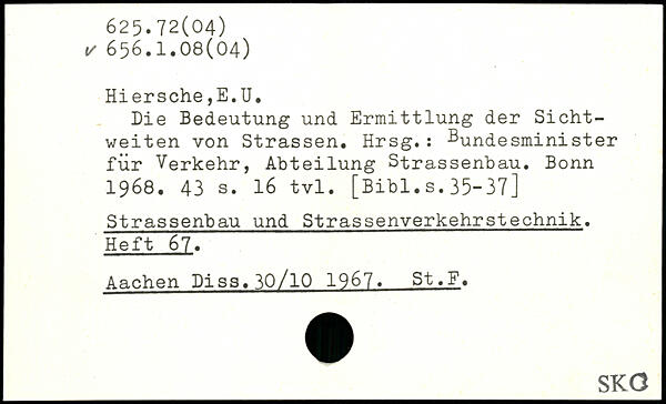Die Bedeutung und Ermittlung der Sichtweiten von Strassen. Hrsg.: Bundesminister für Verkehr, Abteilung Strassenbau. Bonn 1968.